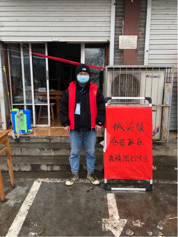 海铭轩同学在社区防控卡点。 从1月26日开始到今天,海铭轩在社区疫情防控卡点完成了近20天的值班工作,主要负责人员出入登记、体温测量、社区消毒等工作。他说他的工作岗位其实很平凡,但是他会用自己的热情和踏实的工作态度完成好每一项工作,让平凡的工作变得不平凡,为抗疫防疫贡献自己的一份力量。 钱昱兴:坚守岗位,我在接力 钱昱兴,管理学院管理科学与工程1904班学生,来自湖北省恩施州咸丰县。自冠状病毒疫情防控工作启动以来,他报名成为了一名社区服务工作志愿者,在做好自身防护工作时,每天配合社区工作人员做好疫情防控工作,在疫情防控阻击战中充分发挥“志愿者”的作用,为打赢疫情防控阻击战奠定坚实基础。他参与值班值守工作,每日到居民家中巡访并测量体温,发现疫情,立即上报和隔离,确保疫情防控早发现、早报告、早处置。工作还包含宣传相关科普知识,提醒居民不要外出,对外出人员进行人数控制,劝阻无关人员上街,向来访人员印发告知书、公开信,张贴温馨提示、宣传海报,悬挂宣传横幅等,为打赢疫情防控阻击战营造良好的舆论氛围,引导广大居民群众科学应对、有序防范。他说:“这些工作看似琐碎、重复,但是是最重要的工作,大家一分一毫都不敢马虎。”同时,还要做疫情防控监督工作,对社区内人员易扎堆场所进行遣散,对人员出入不戴口罩行为进行提醒,上门对每家每户发放疫情通行证,每户居民能派一人进行生活必须品采购确保居民正常生活需求。