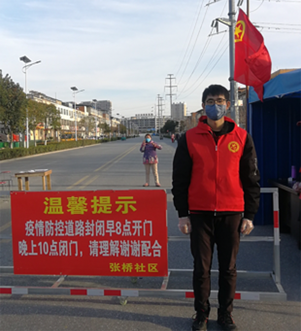 新型冠状病毒感染的肺炎疫情发生以来,生科学院全体师生坚决贯彻习近平总书记对新型冠状病毒感染的肺炎疫情作出的重要指示精神和李克强总理批示要求,扎实有效开展疫情防控工作。众多学生志愿者投身疫情防控第一线,用实际行动践行新时代青年的责任与担当。 离校返乡的学生根据规定完成居家自我隔离后,并在隔离期结束后主动联系当地相关部门参加防疫工作。同学们根据自身和当地实际情况,通过参与基层防疫监测、协助开展防疫物资发放、参与防疫知识宣传等方式投身战“疫”行动。 葛晟昕是生物技术专业2016级学生,他从武汉返乡并结束医学观察隔离后,主动报名参加了当地的疫情防控工作,作为志愿者负责对往来车辆和人员进行监测。他表示,自己作为一名入党积极分子,作为一名新时代的大学生,有责任、有义务为抗击疫情做出自己的贡献。他还盼望着春暖花开时,在熟悉的武汉、眷恋的校园里看南湖边的日出日落。