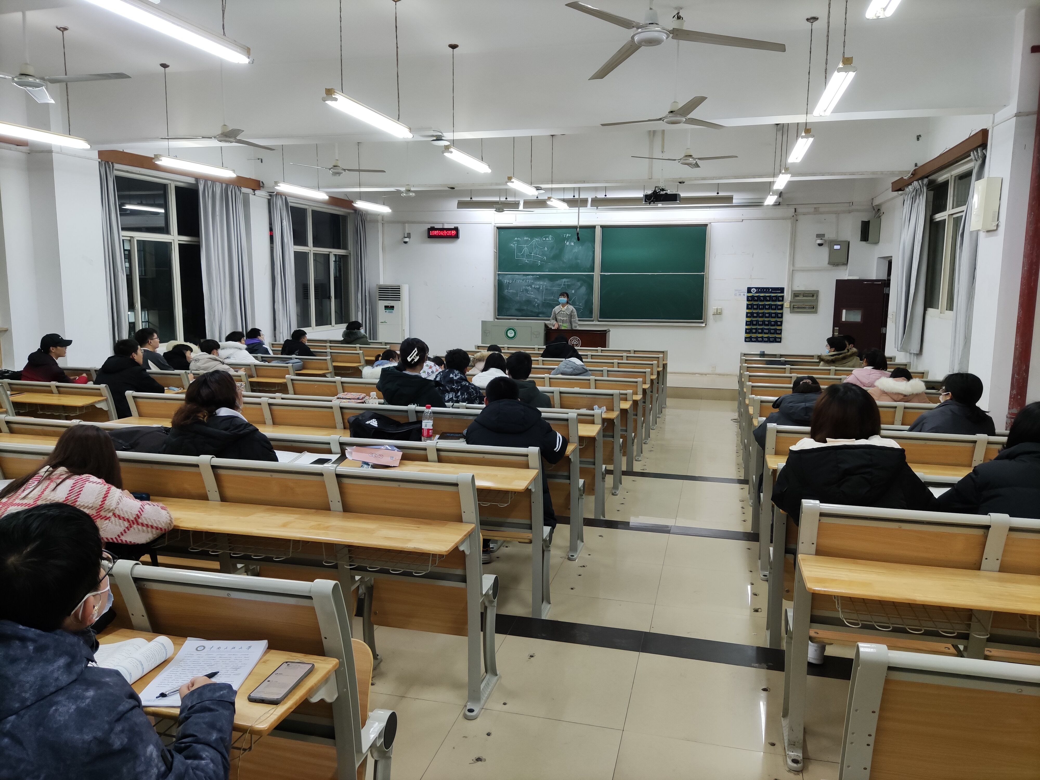 班级同学讲题 李佳妍 摄 活动展开前,部分20级同学反应因期末以及考研临近,进入复习阶段后,图书馆难觅一席,学习难题无人解惑。为此,学院积极组织展开每周五天的晚自习活动。本次活动两个班级为一单位,由班长申请教室于18:40-20:40在教学楼开展。