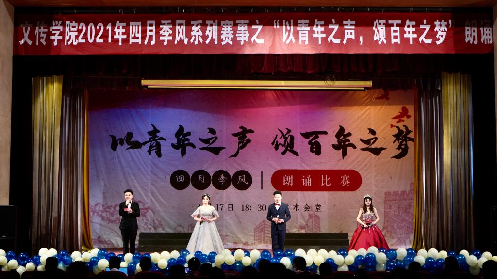 “以青年之声 颂百年之梦”朗诵大赛于2021年4月17日在学术会堂举行,文学与新闻传播学院2020级16个班级全员积极参与,歌颂党的光辉历程,献礼党的百年伟梦。其中文学2001班将青春与祖国紧密联系在一起,在朗诵中展现了青年人的责任与担当,“一代人有一代人的长征,一代人有一代人的的担当”,与时代同呼吸,与国家共命运,誓将最美好的青春岁月献给祖国,为实现中华民族伟大复兴贡献自己的力量。他们用抑扬顿挫、满含真情的朗诵表达他们的思想与情感,打动了许多观众,获得了本次朗诵大赛的一等奖。