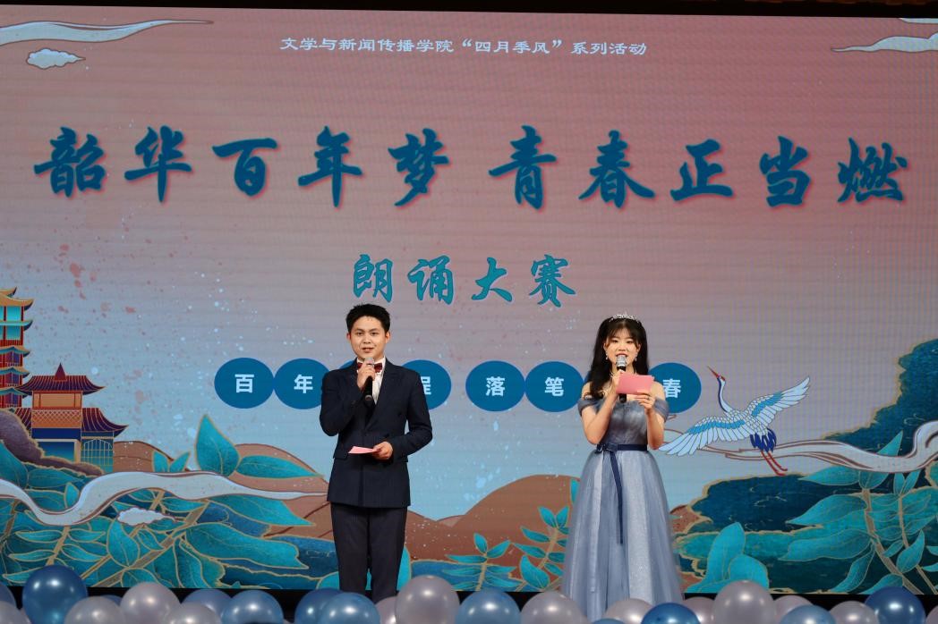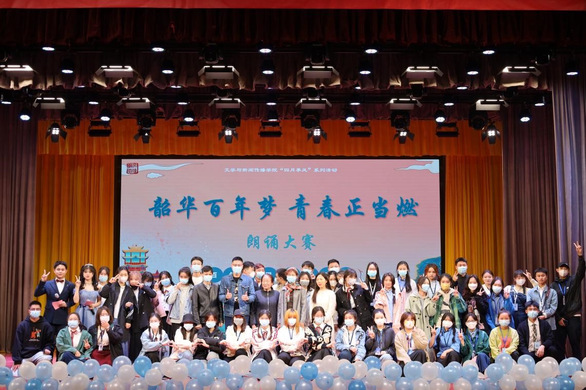 4月16日晚18:00,文学与新闻传播学院在学术会堂成功举办了2022年“韶华百年梦,青春正当燃”朗诵大赛,给大家带来了一场缤彩纷呈的视听盛宴。出席本次比赛的嘉宾有文学与新闻传播学院党委副书记张文军、专职组织员伍岚,由2021级辅导员龚观、beat365官网国际交流处萧小玉老师和文学与新闻传播学院黄云霞老师担任评委。