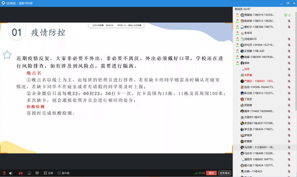 2022年4月16日至17日,数学与统计学院各班分别于线上线下举办“疫情防控”主题班会。各班班导师及全体学生参加班会活动。
