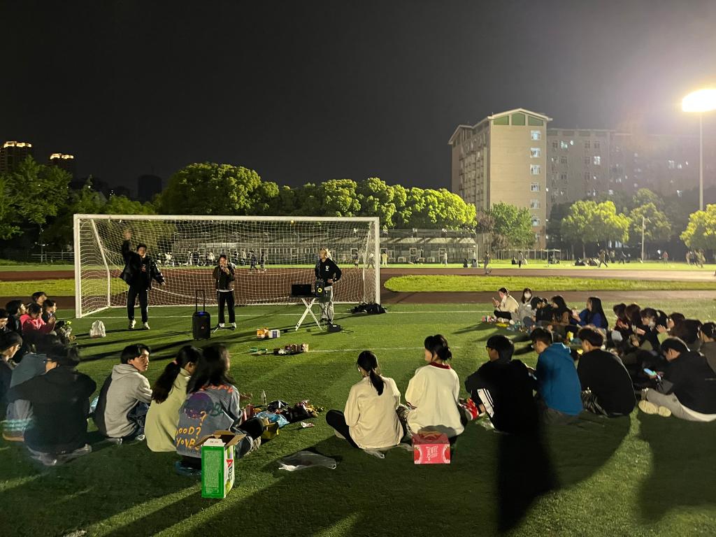 活动大致分为自我介绍、才艺展示、互动游戏和奖品兑换四个环节,但两个团支部的活动又各具特色。应数团支部的团建活动举办地点在南区操场,大家围圈席地而坐,并邀请了DJ嘉宾全程伴奏,氛围感拉满。在互动游戏环节,123木头人、你画我猜等多种游戏都紧跟当下年轻人的潮流,让每一位同学都参与其中。其中游戏惩罚环节,更是有“广西科目三”、“擦玻璃”等热门舞蹈的展示,引得大家掌声不断。大数据团支部邀请了班导师贾小英老师和辅导员朱浩军老师参与班级团建,并让两位老师加入分组游戏与大家同乐。大数据把所有同学分成七个小组,整个游戏过程分为传声筒、竞猜歌名、数字问答、线传乒乓等4个小游戏,各个小组赢得比赛后将获得相应积分,最终获胜的前两组将获得精美礼品。活动最后,贾老师总结到,本次活动她感受到了大数据学生的青春与活力,即便当下受疫情影响,大家也可以在这段抗疫时光里收获难能可贵的美好的大学友情。
