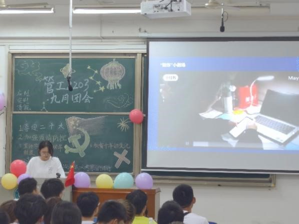 在党的二十大即将召开之际,管理学院各团支部结合中国共产党的百年峥嵘岁月,特别是十八大以来这十年取得的辉煌成就,立足“喜迎二十大,奋斗新征程”这一关键节点,通过观看视频及讨论的形式,同学们更加全面地了解到中国共产党总结历史,开创未来的决心和毅力。深刻理解”青春心向党、奋斗正当时“的重要意义,纷纷表示要以实际行动迎接党的二十大召开。
