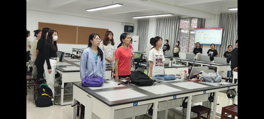 商英2002班齐唱国歌。 外语学院 供图