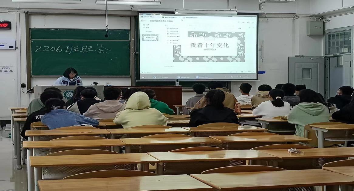 为激发学生爱党爱国热情,迎接党的二十大胜利召开,资源与环境学院全体师生在院党委的领导下召开以“我看十年变化”为主题的班团会。
