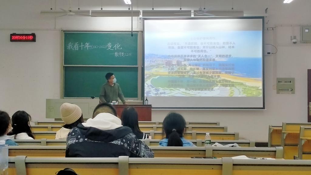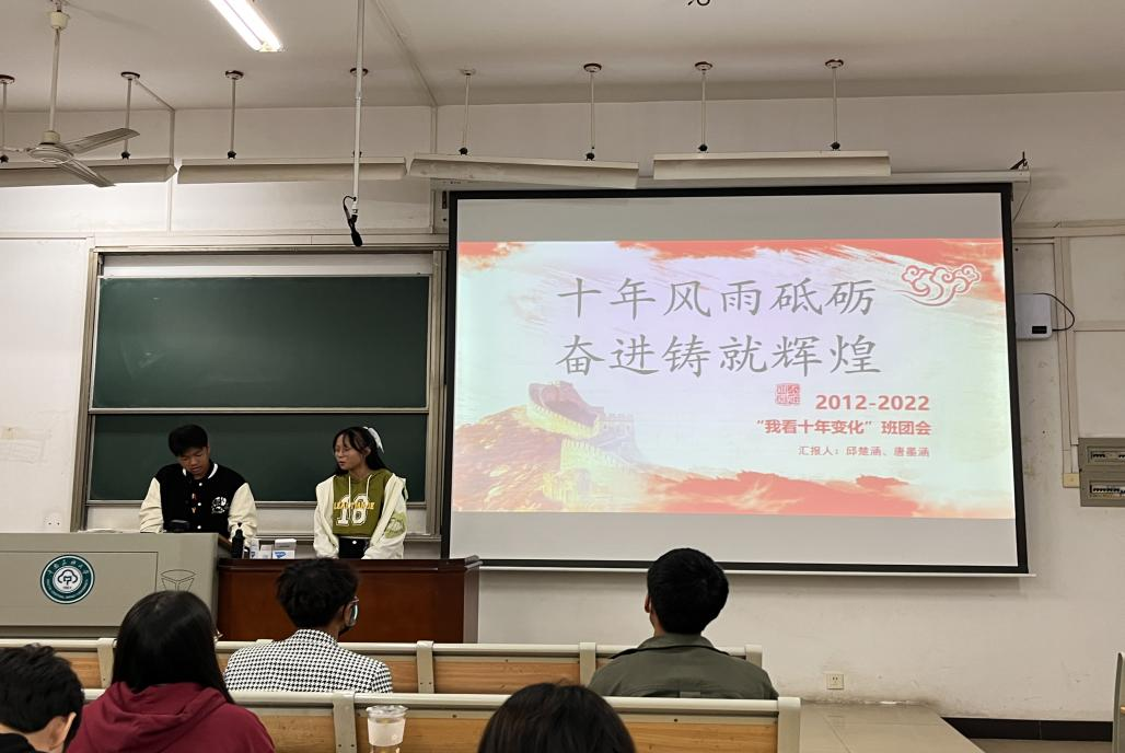 党的十八大以来,以习近平同志为核心的党中央带领全国各族人民锐意进取、开拓创新,取得了辉煌成就。为纪念祖国这十年走过的光辉历程,数学与统计学学院各班级相继开展以“我看十年变化”为主题的班团会。