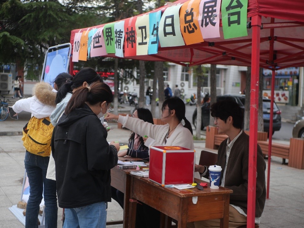 2022109日,外语学院在南区一、二食堂之间顺利开展“10.10世界精神卫生日”互动体验活动,吸引全校众多同学和老师积极参与。