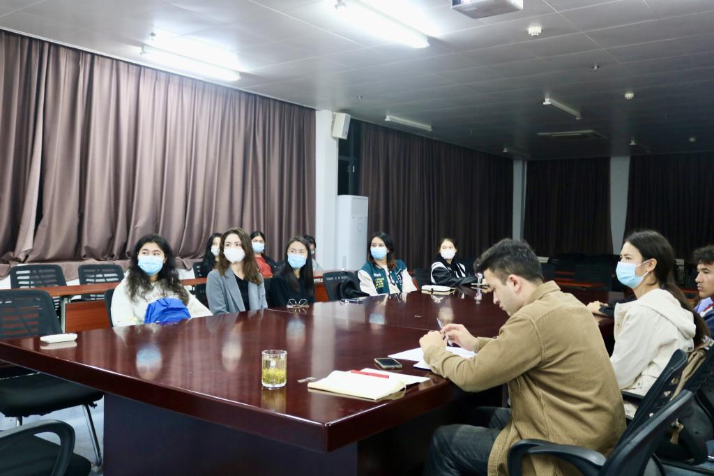 10月20日晚,药学院在学院会议室组织新疆籍学生学习党的二十大报告精神。学习会采取线上线下同步进行,院党委书记江莹、副书记吴孔勇、新疆籍辅导员艾克拜尔·买买提依明、院全体新疆籍学生共计60余人参会。