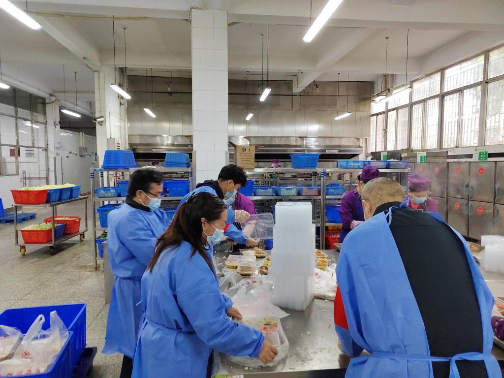 与此同时,管理学院教师坚守初心和使命,扛起责任与担当。学院党政领导班子看望一线工作的学工队伍,组织物资慰问师生。教工党员响应号召,冲锋在前,参与学生楼栋配餐、送餐等后勤保供工作。各班导师们迅速组织召开线上疫情防控主题班团会,为同学送去关心关爱,确保学校疫情防控各项举措落实落地。