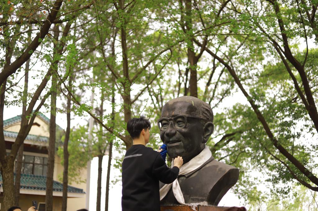 党员学生代表擦拭吴泽霖先生雕像。 文晓轩 摄