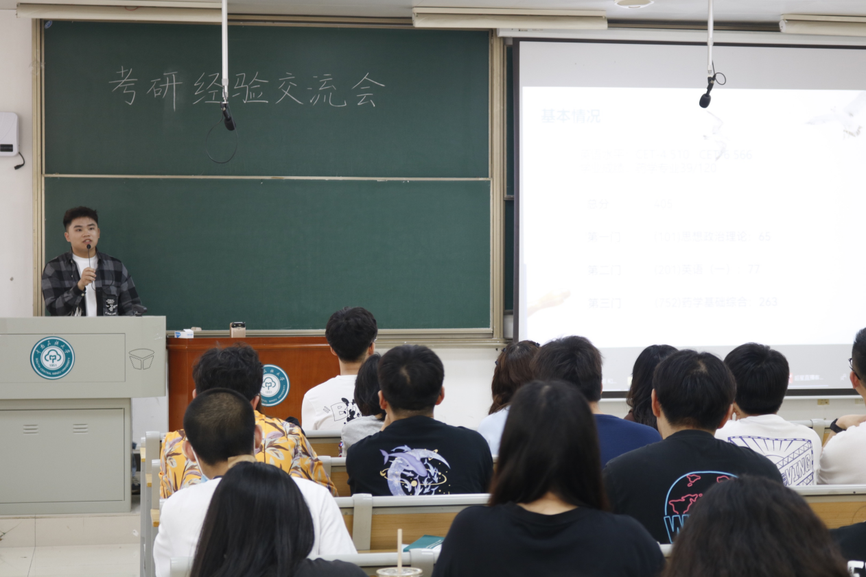 4月20日,药学院药学系在15205教室组织召开考研经验交流会。本次交流会由药学系主任王强老师主持,2020级药学专业本科生参会。本次交流会邀请到六位2019级本科生为大家作考研经验分享。