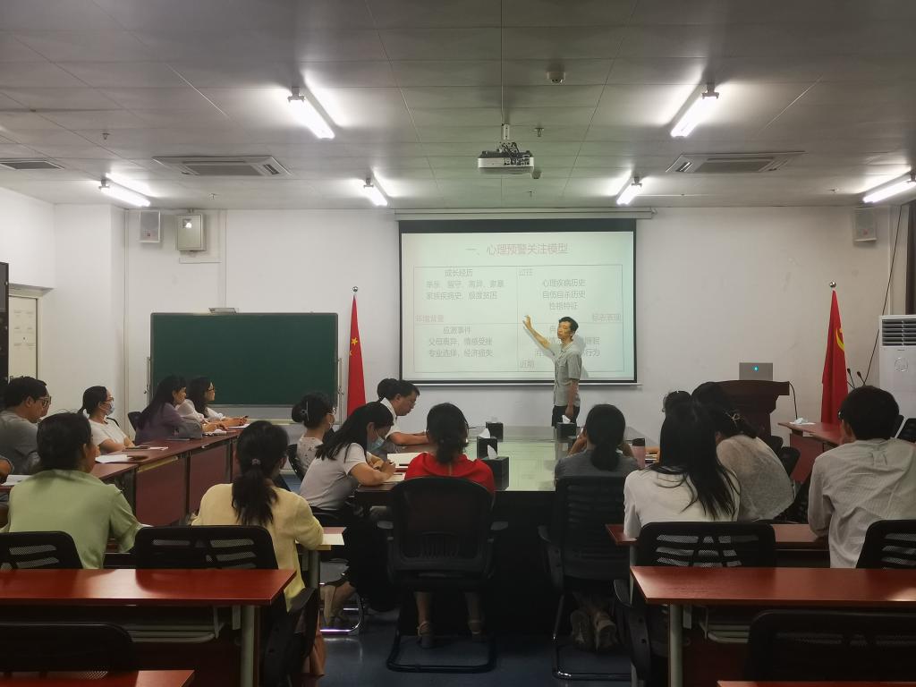 为进一步提升班导师学生管理工作能力,扎实推进学院“三全育人”工作,6月1日下午,学院在13-203组织召开班导师培训会。本次培训会邀请学校学生心理健康教育中心严亮老师作为主讲嘉宾。院党委书记江莹、副书记吴孔勇,全体专兼职辅导员、班导师参加会议。会议由吴孔勇主持。