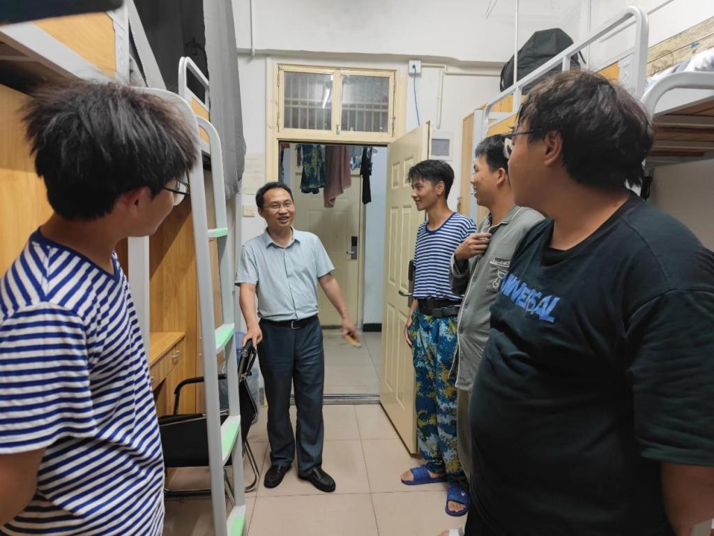 老师们在与同学们交流的同时也检查了每间寝室的卫生和安全状况,对电器的使用是否符合规范特别予以关注,并耐心地对存有一定安全隐患的寝室进行了现场纠正与教育。