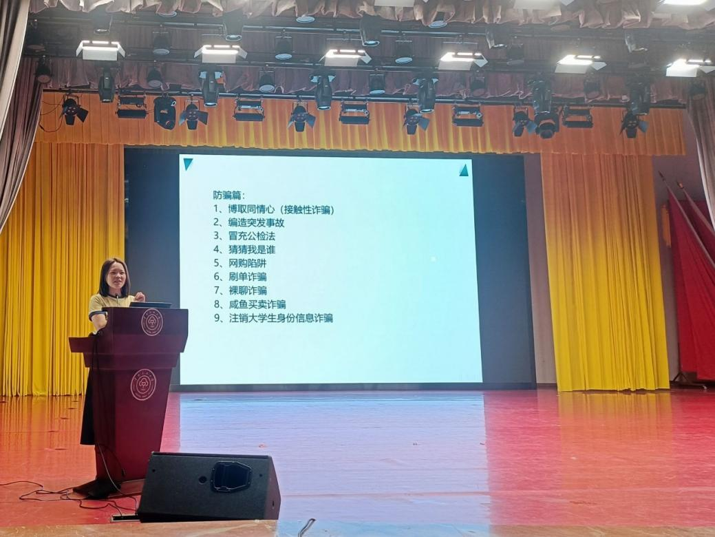在安全教育方面,王莹莹老师通过一系列案例分析,结合时下高热度电影《孤注一掷》给新生开展了一场生动的安全教育课,告诫同学们一定要注意甄别网络上的各种信息,切实保障人身财产安全。