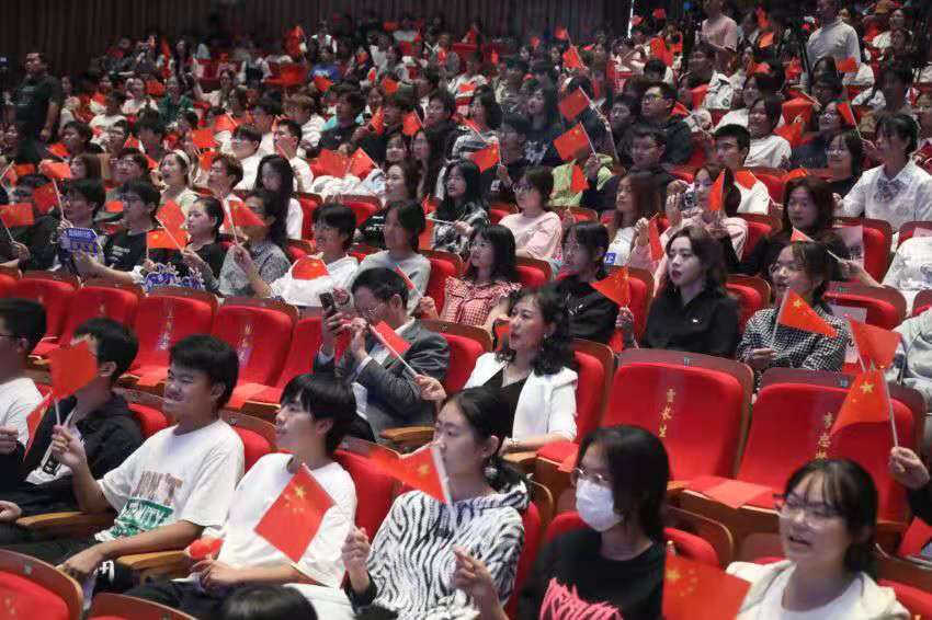 活动最后在全场挥舞红旗合唱《歌唱祖国》中结束。