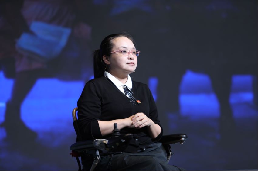 武汉市青山区蒋家墩社区干事杜诚诚分享了演讲《我是你的眼,你是我的光》。“因为自己淋过雨,所以特别想帮别人撑把伞。”凭借着这一信念,她投身于公益事业,义务为盲人讲解电影。