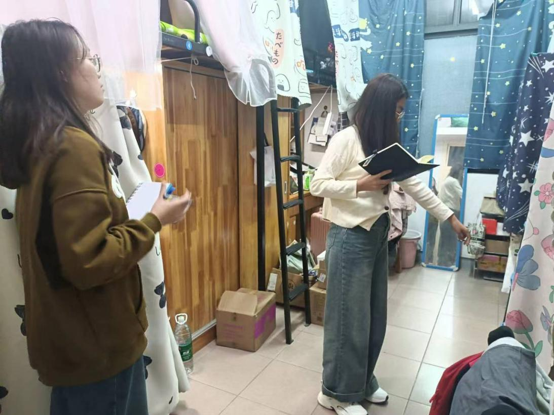 目前学院已开展了三次查寝工作,本次查寝内容包括检查寝室卫生情况以及是否存在大功率违规电器等。整个查寝过程中各个小组成员对寝室卫生清理、通风情况以及整洁程度做了仔细检查,并温馨提醒同学们杜绝使用违规电器,保障用电安全。