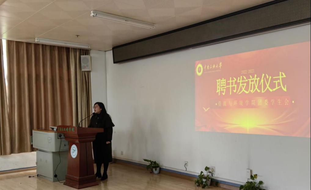 11月16日,资源与环境学院于13栋教学楼举行了2022届团委学生会成员聘书颁发仪式。学院党委书记刘子元、副书记蓝永丽、学工办主任黄晴、院团委副书记王莹莹以及22、23届团委学生会成员参与了此次活动。仪式由团委学生会黄秋实主持。