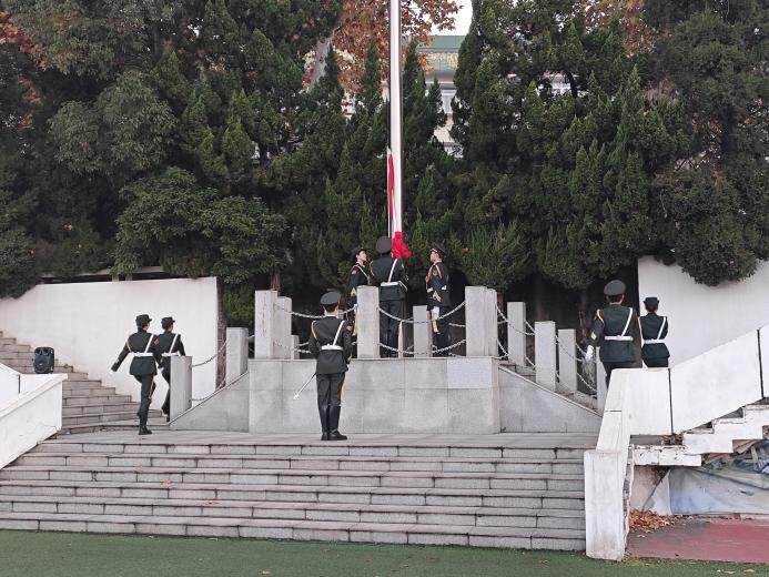 11月27日上午七时,教育学院和体育学院在南湖操场举行升国旗仪式。教育学院、体育学院全体班子成员及师生代表,2023级全体学生参加。