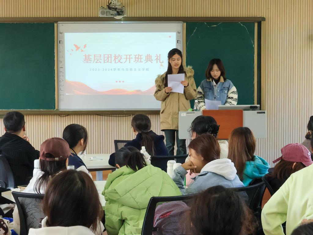 11月27日中午,马克思主义学院于文一楼511教室举办2023年基层团校开班仪式暨第一次集中授课。院党委副书记李建青、团委书记金瑶出席仪式,2023级基层团校全体成员参加。本次活动由组织委员王乐乐和孙雨佳共同主持。