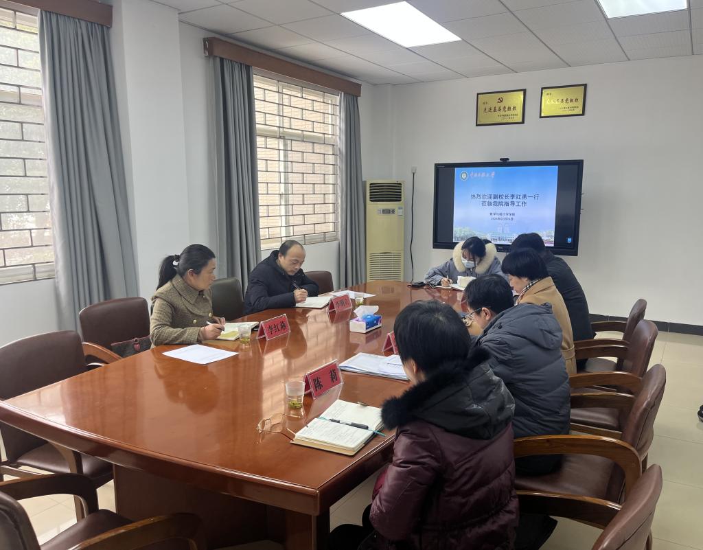 2月26日上午,副校长李红燕、教务处副处长李明立一行深入数学与统计学学院课堂一线听课,就新学期开学工作作调研座谈。数统学院领导班子陪同听课并参与座谈,座谈会由数学与统计学学院党委书记郭晖主持。