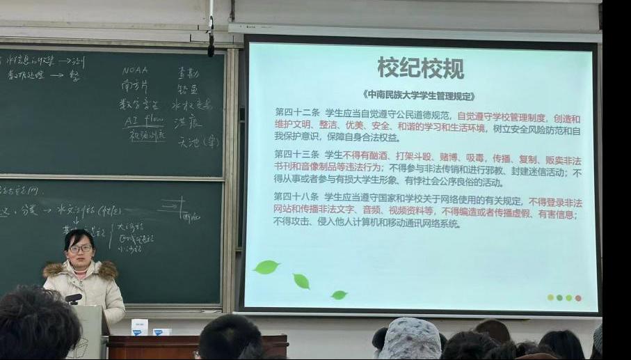 水文2201班班导师讲解校纪校规。 资源与环境学院 供图