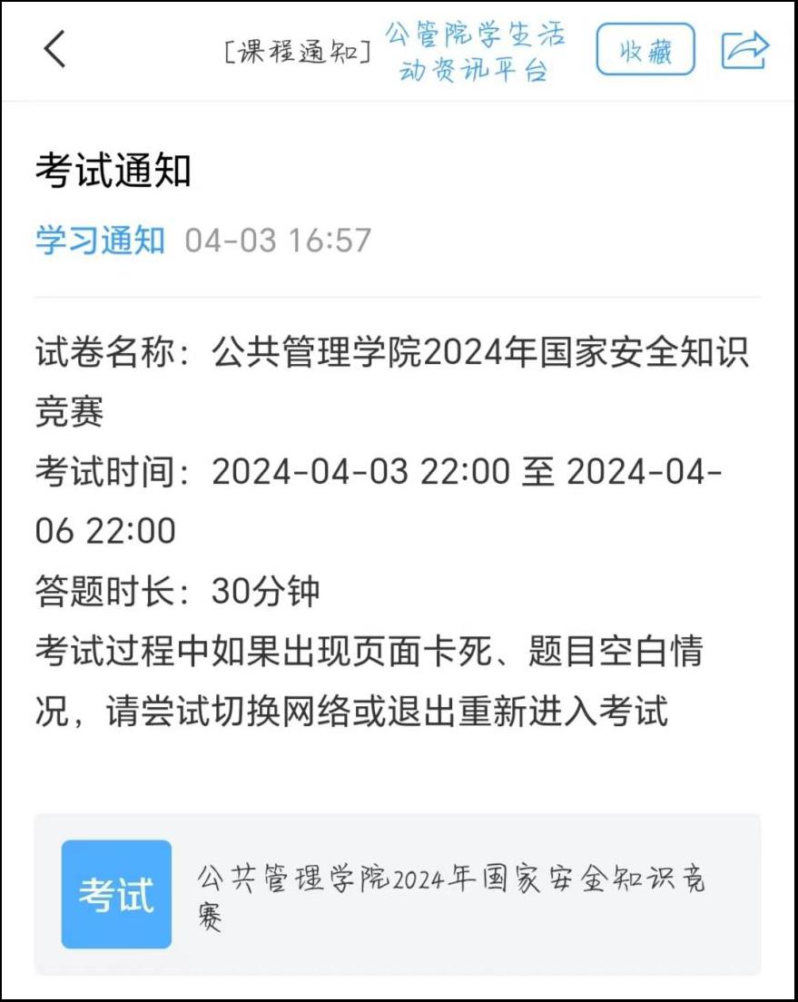 为深入贯彻落实习近平总书记提出的“总体国家安全观”,进一步增强同学们的国家安全意识,普及国家安全法知识,公共管理学院于4月3日通过“学习通”平台举办了一场线上国家安全知识竞赛。此次竞赛引发同学们的广泛关注与积极参与,共吸引305名同学参加。