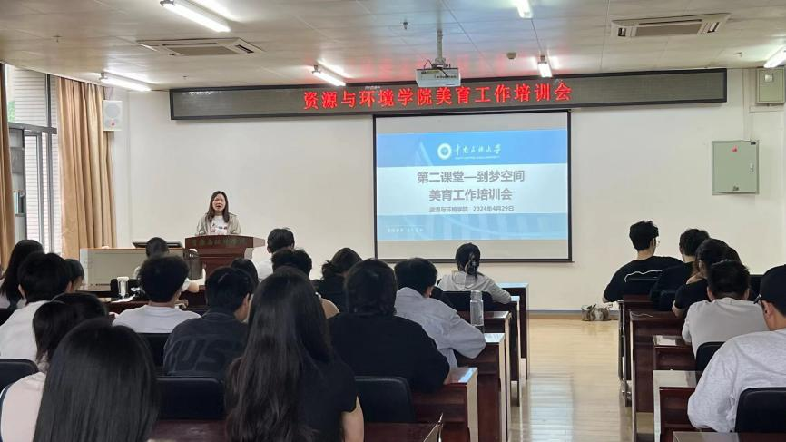 美育是审美教育、情操教育、心灵教育,也是丰富想象力和培养创新意识的教育。为贯彻落实习近平总书记关于教育的重要论述,强化学院美育育人功能,构建德智体美劳全面培养的教育体系,资源与环境学院于4月29日在13号教学楼261会议室召开了美育工作培训会,23级班干部、文工团代表及团委学生会文艺部全体成员参会,会议由团委副书记王莹莹主持。