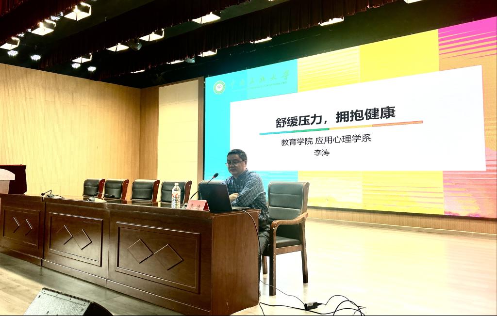 为进一步增强学生心理健康意识,提升情绪调节能力,疏解心理压力,助力高考,5月31日,教育学院赴梁子湖高级中学开展以《舒缓压力,拥抱健康》为主题的心理健康讲座,主讲人为教育学院应用心理学副教授李涛。教育学院党委书记林晋,鄂州市梁子湖高中党支部书记、校长张敬龙,双方单位班子成员、教师代表和300余名梁子湖高中学生参加了此次活动。