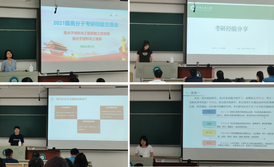 5月31日下午,高分子系教工党支部组织开展了21级高分子材料与工程专业的考研经验交流与帮扶活动。高分子系的教工党员与16名20级高分子考研成功的同学和61名21级高分子有考研意向的同学参与了指导与交流,活动在11教208教室举行。