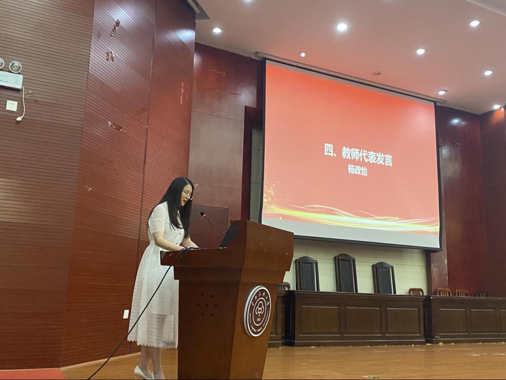 教师代表杨政怡老师用自己的亲身经历和深刻感悟,向新生们传授了宝贵的学习经验和人生智慧,表达了对新生们的殷切期望和美好祝愿。