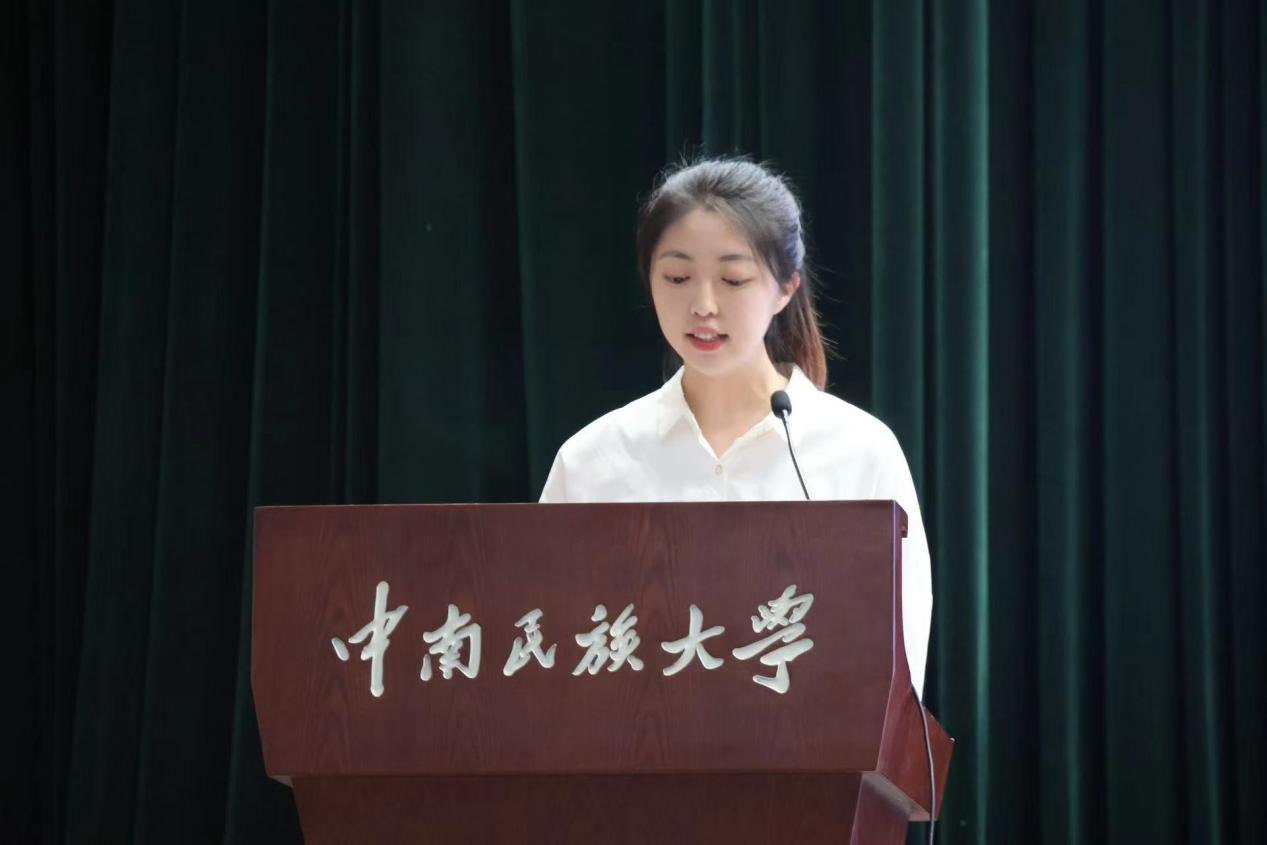 老生代表注会2101班黄晓琪发言。刚刚入选学校第二十七届校研支团成员的她以“用理想做加法、用自律做减法、用奋斗做乘法、用豁达做除法”来号召学弟学妹们在大学中找寻目标,明确方向。