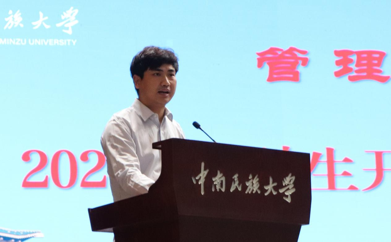 注会2401班班导师刘亚伟作为教师代表发言。他表示全体教师都会为学生的成长成才保驾护航,希望同学们以学习为要,将“管汇经纬,理融中西”的院训精神内化于心,外化于行,勇敢追梦。