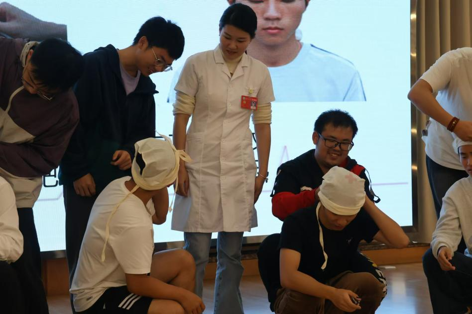 将理论讲解与实际操作相结合,杨冰老师全面展示了急救包扎技巧,并通过现场演示加深了大家对这些技能的理解,也为后续的实践操作打下了理论基础。为了确保每位学员在遭遇意外伤害时能迅速且有效地进行初步自救互救,培训还特别配备了急救包和各类包扎材料,供学员们进行模拟包扎练习。