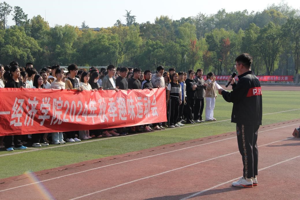 为进一步贯彻实施《全民健身计划纲要》,积极响应“全国亿万学生阳光体育运动”的号召,11月10日下午,经济学院在南湖操场举办了以“点燃运动激情 绽放青春活力”为主题的“缤纷秋日,趣享运动”经济学院秋季趣味运动会。经济学院本科生、研究生合计460余人以班级为单位组队积极报名参赛。经济学院团委书记安树庭、班导师代表白勇军、王斌、舒曼,研究生辅导员熊岳炜及2023级辅导员徐文洋到场参与。运动会开幕式由徐文洋主持。