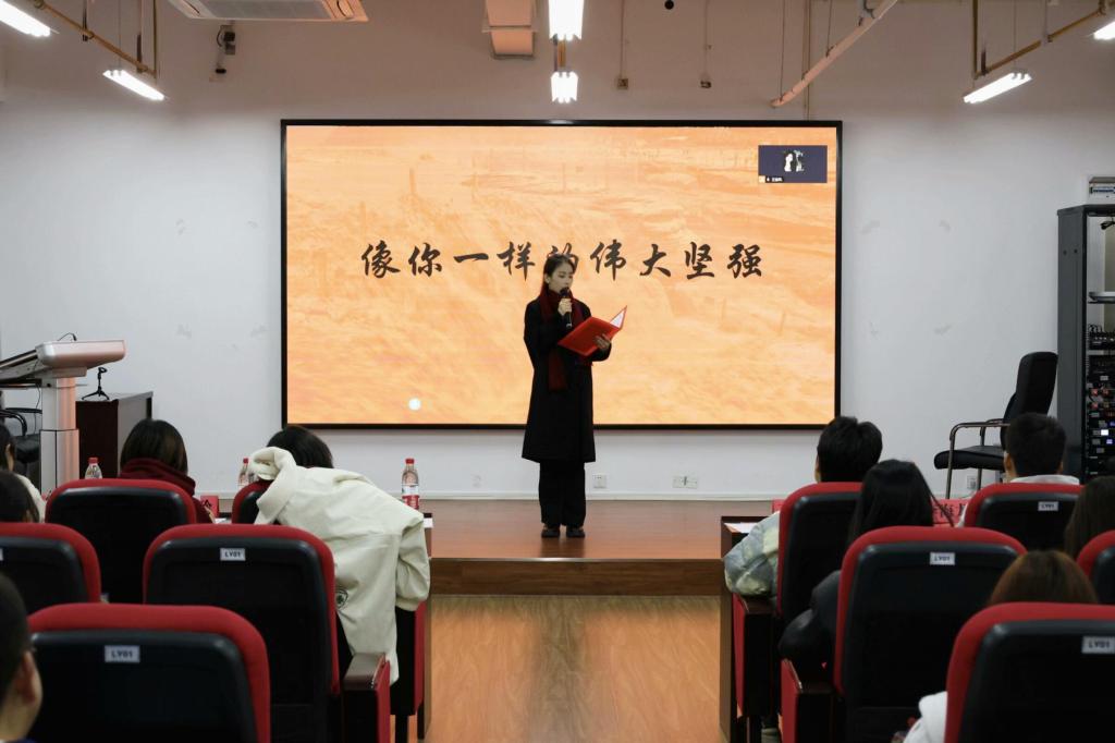图为预理2405班周欣怡朗读“像你一样的伟大坚强”