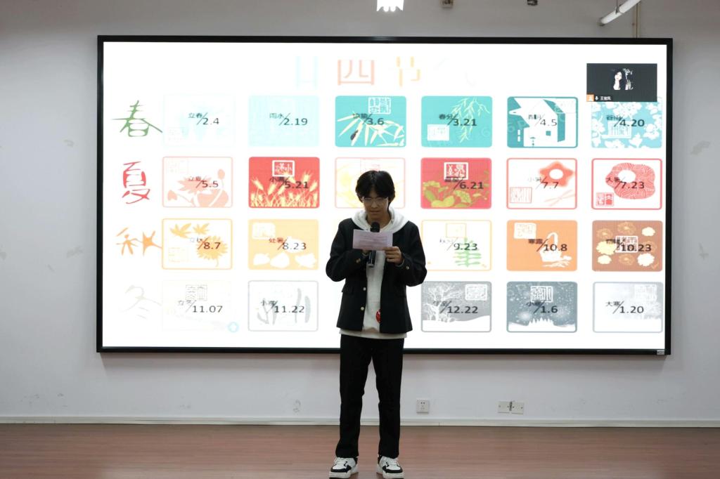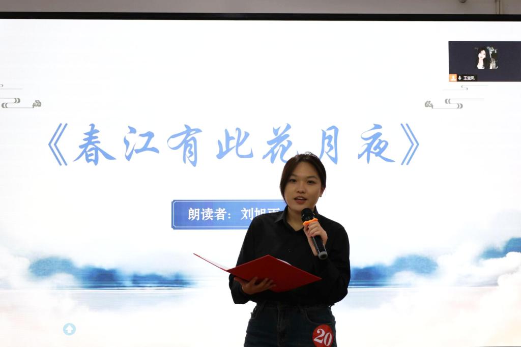图为预文2404班刘旭雨朗读“春江有此花月夜”