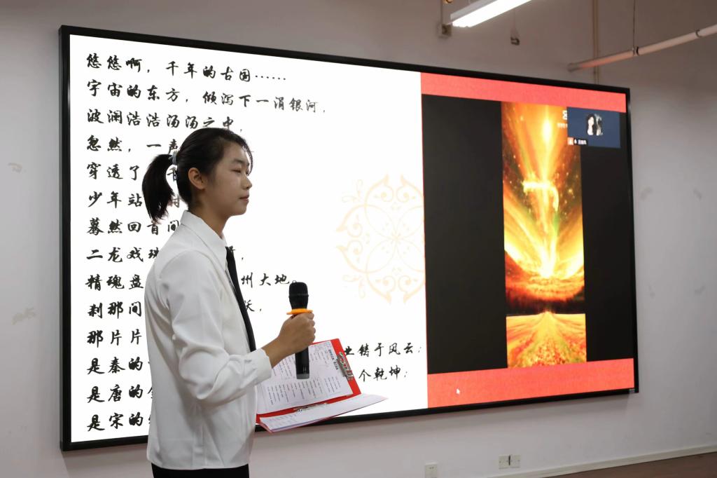 图为预文2402班施雨蕊朗读原创内容“道中华之美,美之甚哉”