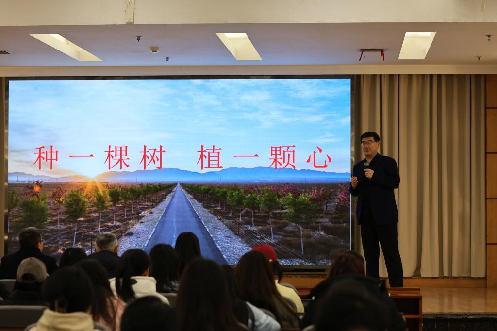 12月12日上午,由党委学生工作部主办的《种一棵树,植一颗心》——阿拉善“种树植心”志愿服务行动公益讲座在学术交流中心润良报告厅开展。本次讲座由阿拉善种树植心生态文明实践教育中心创建者吴向伟老师主讲。党委学工部有关领导及科室负责人、部分辅导员以及资源与环境学院、管理学院、经济学院等学院的学生代表们积极参与。