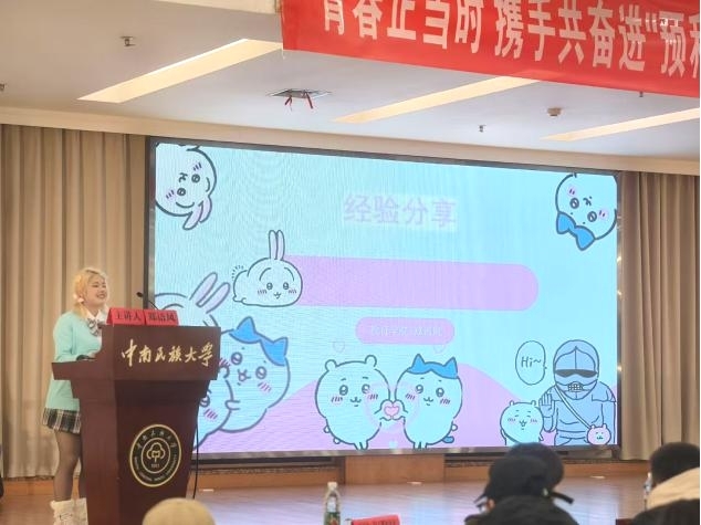在会议尾声,学院辅导员老师玛依拉老师对分享会做出总结。首先对四位学长学姐的经验分享做出感谢,同时鼓励大家积极对各种比赛进行试错,对任务进行深入调研,对想法坚持落实,并对大家学习思维以及学习方法提出建议。相信在众多学长学姐与老师的帮助指导下,预科学子定能心怀热血,为梦想而战,砥砺前行,无畏风雨,直至巅峰。