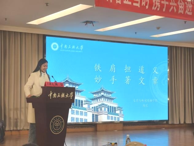 最后,文学与新闻传播学院陈信学姐介绍自己“不至于前,不止于此”的预科生活。并介绍了新闻学的学习内容与新闻人的专业素养。