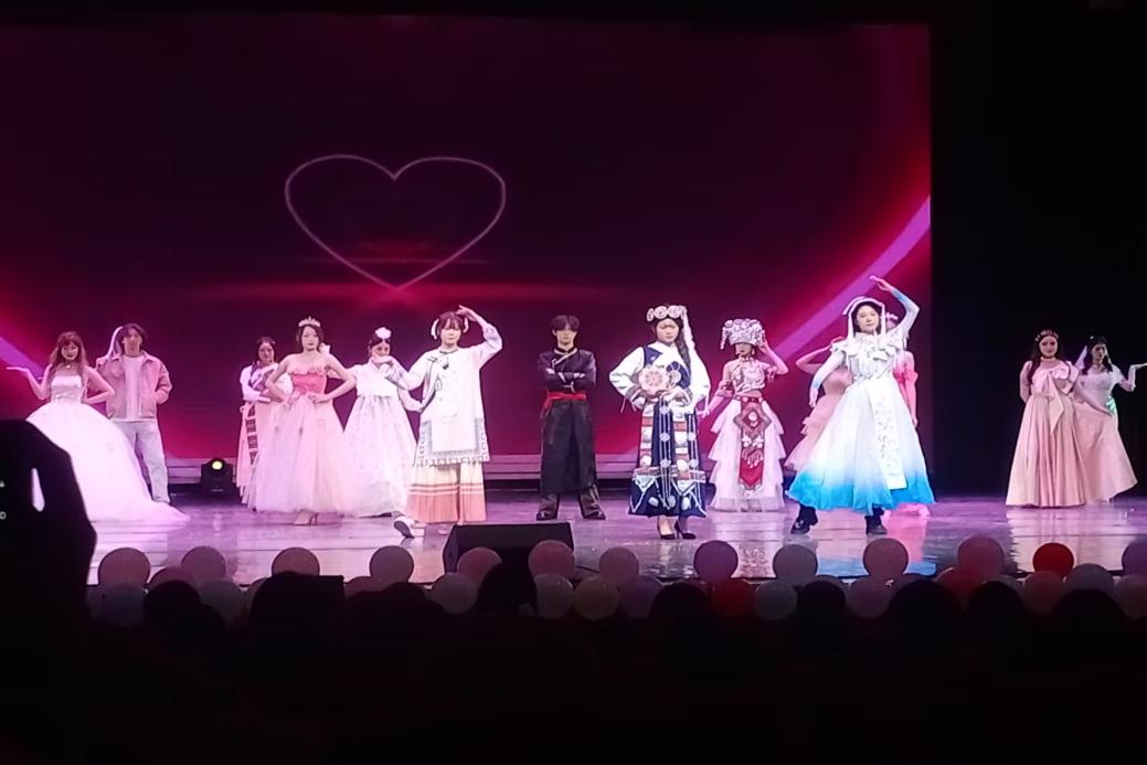 晚会以一场震撼人心的民族华服走秀拉开序幕。身着各民族传统服饰的同学们依次登台,将中华民族丰富多彩的文化内涵淋漓尽致地展现在观众面前,以直观的形式传递了“和合中华”的主题思想,彰显了各民族团结共融、和谐发展的精神内核。华美的服饰、优雅的步伐与自信的笑容交相辉映,台下掌声雷动。
