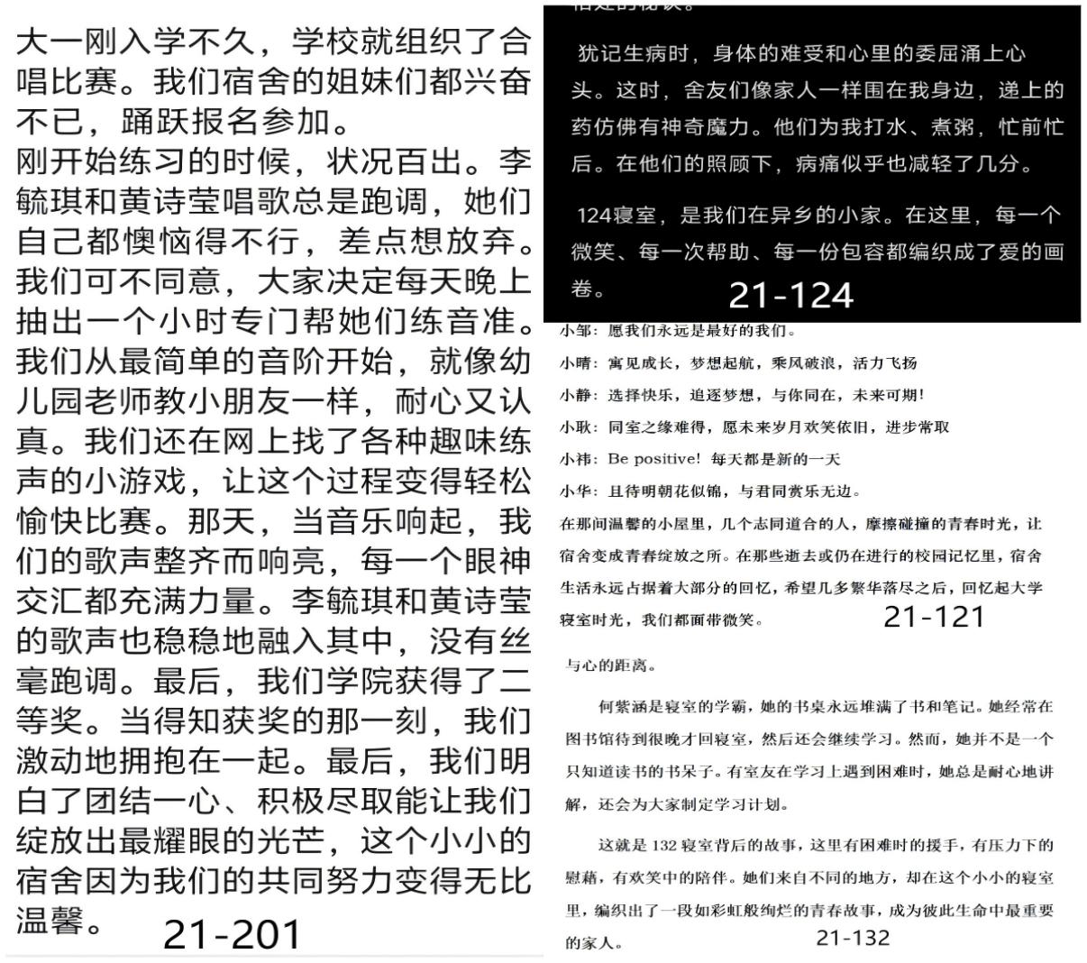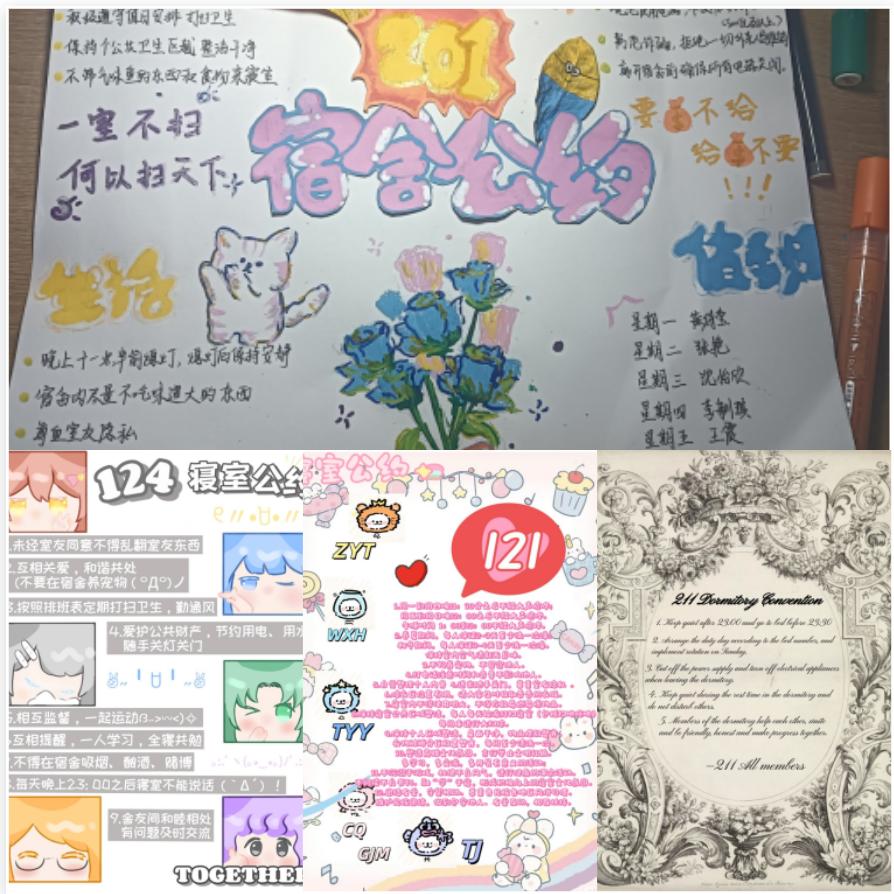 铸牢中华民族共同体意识,凝聚“大爱”力量。2024级本科新生共有211人,来自全国24个省(区、市),涵盖16个民族。全体新生共计40个宿舍参加了本次比赛。各宿舍成员在寝室长的带领下共同商讨、精心设计制作了形式多样、展现宿舍特色的寝室公约,拍摄了寝室合照,并记录了宿舍成员入学以来“寝”心协力的团结故事,充分展示了寝室集体积极向上、团结友爱的良好精神风貌。一份份制作精美的寝室公约和一个个充满温情的寝室故事,不仅凝聚了每位成员的智慧和心血,更为宿舍集体留下了一段温馨而难忘的记忆。