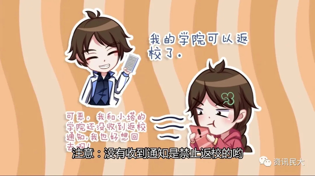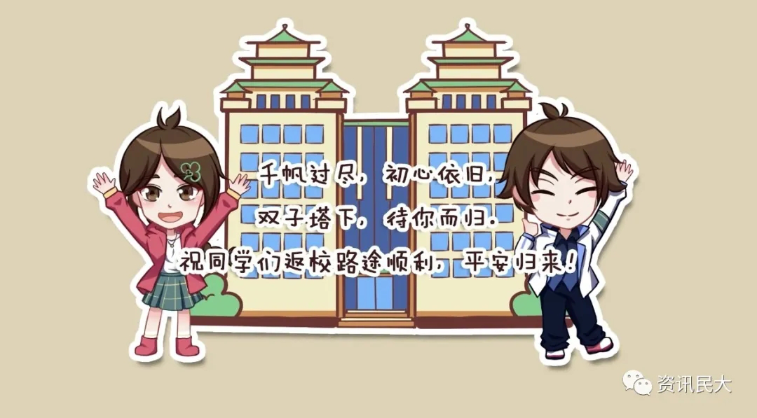 (学生返校 来源 咨询民大) 返校后注意事项。 1.每日健康监测。校内布设了100多个测温点,学生需定时到测温点打卡,以保持校内健康码为绿色。 2.配合校园封闭管理。疫情期间实行严格的校园封闭管理,各寝室学生不相互串门,办完离校手续即可离校,离校后不能再次返校。 3.免费提供一日三餐。学生可以在宿舍领取免费一日三餐,用餐时注意保持距离。 4.个人防护。在校内公共区域和人员聚集场所,应佩戴口罩,回到宿舍及时洗手,加强宿舍通风,保持卫生。 5.暂停聚集性活动。疫情解除前,不召开学生聚集性会议,严禁聚集性拍照,暂停组织聚集性的校园文化活动,鼓励开展多种形式的线上展示交流活动。 6.赠送学士服、毕业生纪念品。学校为毕业生准备了学士服和具有丰富校园文化特色的纪念品,由学院安排发放。 7.退住宿费。2020年春季学期住宿费全免,毕业生已缴费的退还学生本人,非毕业生等待具体通知。 8.毕业生送站。为了给毕业生提供温馨、便捷的离校服务,学校提供免费送站服务。学生可在「返校申请」系统中提前填写离校行程信息,提前预约送站车辆。