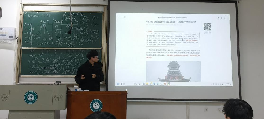 在医信2302班的班会上,“寒假实践内容分享”环节中,不少同学主动分享了他们的实践经历。刘汪裕同学分享了自己寒假在黔东南侗乡见习的经历。在贵州省黎平县佳所村,他参观了当地的侗族村落,体验了侗族的传统生活方式,了解了侗族的建筑、服饰和饮食文化。在坪坝镇,他了解到红军长征时期的故事,参观了红军长征纪念馆,聆听了当地老人讲述红军经过时的感人故事。他提到,红军在艰苦条件下依然坚持革命理想的精神深深打动了他,也让他更加珍惜今天的生活。
