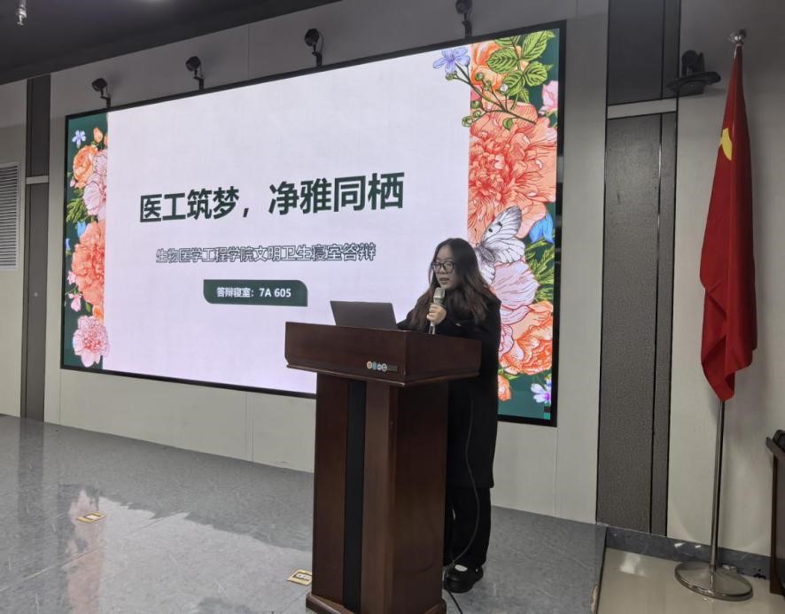 在本次寝室文化建设评选中,生物医学工程学院2405班7A605寝室代表汤韵之同学以卓越的表现帮助寝室夺得桂冠。在答辩过程中,她提到:在环境育人层面:她们制定"网格化"卫生轮值制度,将清洁区域细分为地面除尘、桌面陈列、卫浴清洁等模块,使寝室始终保持"样板间"级整洁度;在安全治理层:她们自主开展"安全隐患自查自纠"行动,遵守校规校纪,坚决杜绝使用大功率电器,实现安全防护360度无死角;在成长赋能层面:寝室成员秉持"知行合一"理念,在保持学业成绩的同时,活跃于学术竞赛、志愿服务、文艺展演等多元化平台,获校级以上荣誉多项。汤韵之同学以逻辑缜密、声情并茂的讲述,将严谨的寝室制度设计与温暖的生活叙事完美交融,其极具感染力,呈现了新时代医工学子的卓越风采。