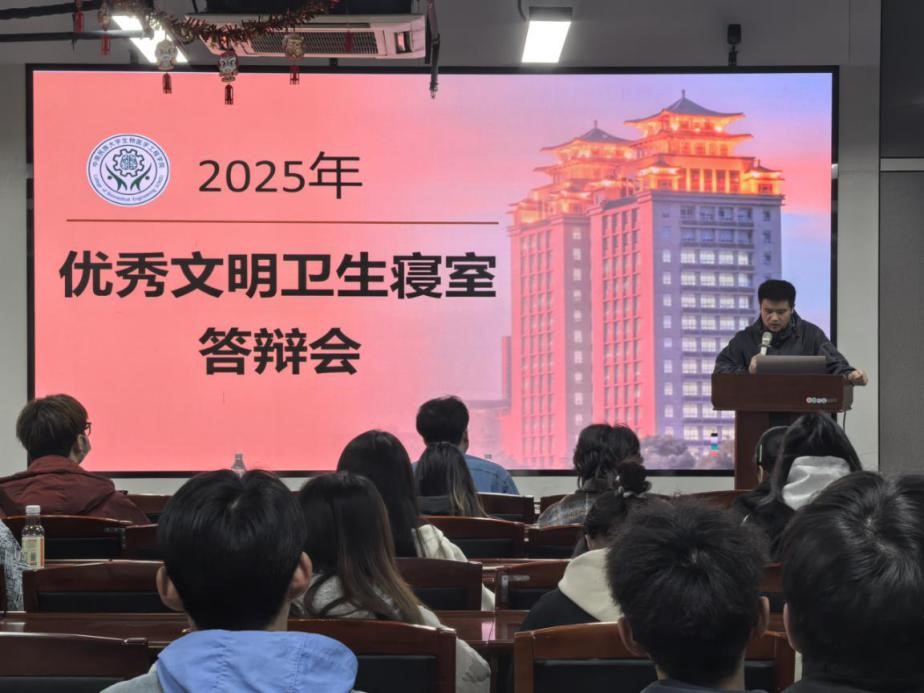 (文/林益庆,图/王佳颖)为培养学院学生良好的生活习惯,保持宿舍卫生环境,提高学生的综合素质,积极打造团结和谐、积极向上、安全卫生的寝室生活环境,我院于2025年3月30日18点半在16栋713教室举行2025年“优秀文明寝室”答辩。此次活动由辅导员叶颖、柴成龙、宿管委负责人崔璨担任评委,活动由院团委宿管委2024级谈艺主持。