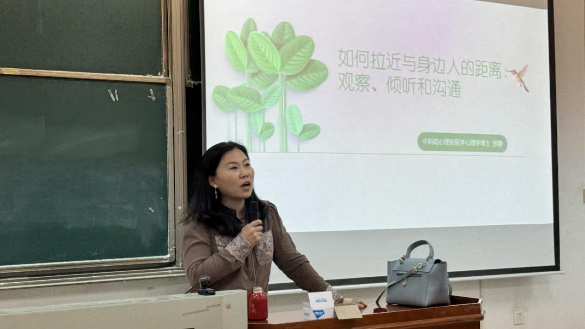 2025年4月10日,我院特邀中科院心理研究所医学心理学博士、知名心理学者罗静,开展了主题为“用‘观察、倾听、沟通’拉近人际关系”的心理讲座。学院全体心理委员及寝室长共计120余人共同聆听这场精彩的讲座。