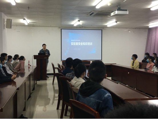 最后,陈军波副院长从实验室安全的重要性、实验室的危险、危险化学品的使用和防护、如何做好实验室的安全工作四个方面对研究生新生进行了实验室安全知识培训,要求研究生新生们务必严格遵守实验室规范和实验操作流程,强调必须以高校发生的实验室安全事故为鉴,重视实验室安全问题,警钟长鸣。
